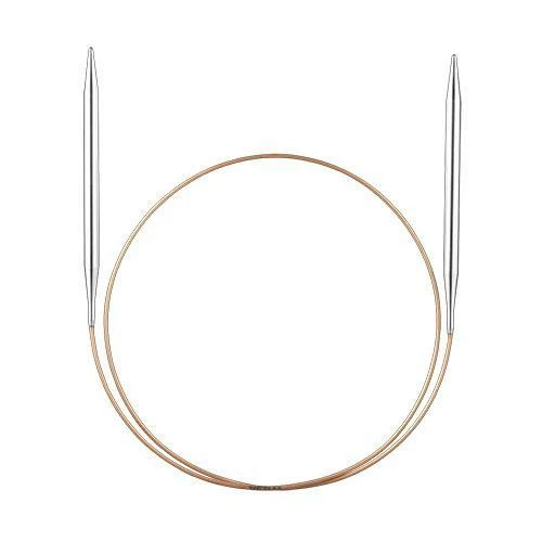 Circular knitting needles with smooth brass tips and flexible gold cords with perfect transitions
