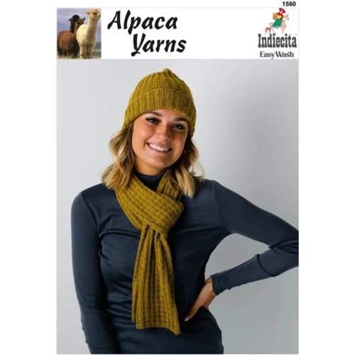 Knitting Pattern for a ribbed beanie and same patterned scarf designed for a DK 8Ply weight Alpaca Yarn – Indiecita DK Easy Wash by Alpaca Yarns – this accessory combo is a charming combination of textures for the beginner knitter to learn and perfect.