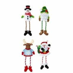Design: Dangling Leg Friends. Finished dimensions: four 3.5×7.5 inch ornaments. Made in USA.