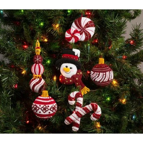 Peppermint Snowman Felt Ornament Kit.