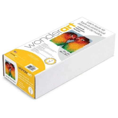 Hook tool and binding materials are not included. Size: 12x12in. Design: Lovebirds. Made in USA.
