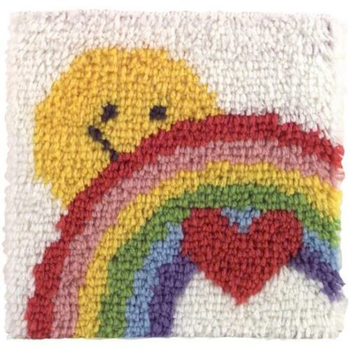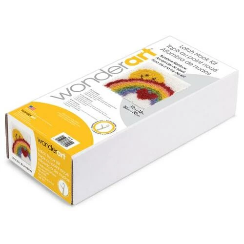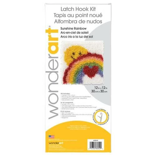 This kit contains a 50% polyester/50% cotton canvas, pre-cut rug yarn, illustrated how to latch hook instructions and an easy-to-follow chart. Hook tool and binding materials are not included. Size: 12x12in. Design: Sunshine Rainbow. Made in USA.
