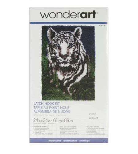 Wonderart Latch Hook Kit White Tiger 24inx34in is a latch hook kit with an animal theme.