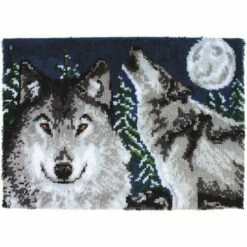 Hook tool and binding materials are not included. Size: 27x40in. Design: Midnight Wolves. Made in USA.