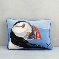 Magie chose three birds with large beaks for her graphic series of birds heads: a flamingo, a toucan and a puffin. The puffin’s beak with its splash of bright orange sheds an outer layer in the winter leaving it smaller and duller. When spring arrives its brightness returns in time for the mating season.