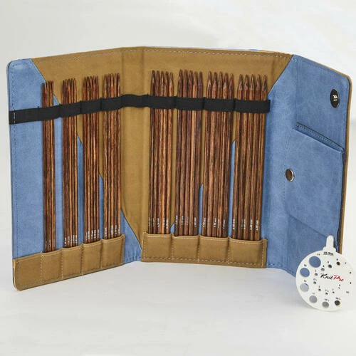 Set of 40 Ginger Double Pointed Needles (8 sizes 5 needles in each size) packed in Premium needle case in denim & beige finish