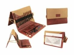 Set of 11 sizes of Ginger Interchangeable Circular Needles packed in a premium needle case with chart keeper in burgundy & beige finish.