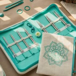 The set brings together 7 of the most popular knitting needle sizes, along with 2 cables and knitting accessories. The assortment is offered in a handy fabric case with a detachable multi-use pouch.