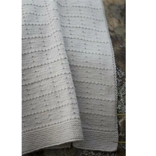 A lovely first blanket for baby with a simple geometric pattern that is perfect for a beginner knitter. Knit and purl stitches make up this square block pattern.