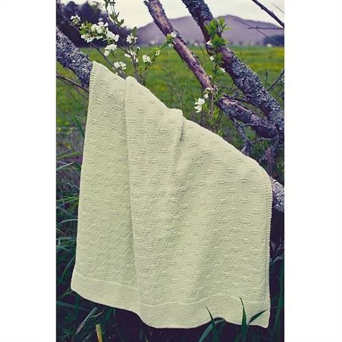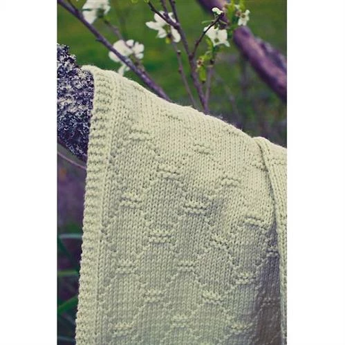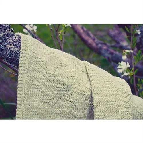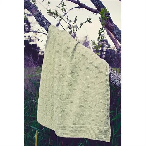 A warm blanket with a mosaic textured pattern and Garter stitch edge.