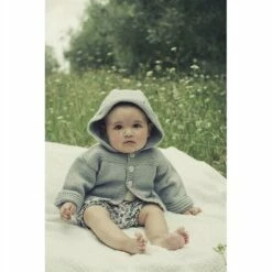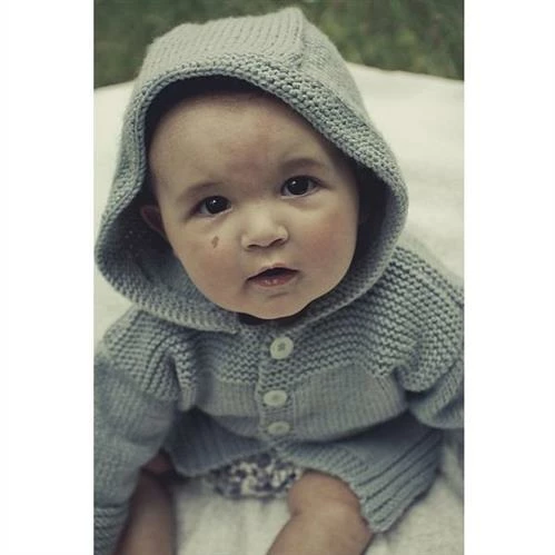 A simple knit textured hoodie with a garter stitch yoke for a boy or a girl.