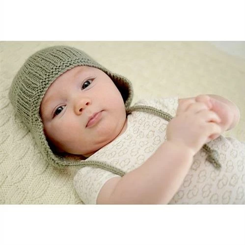 Fabulous bootees that are easy to wear and stay on, teamed up with a textured hat with earflaps. A great addition to any babies wardrobe.