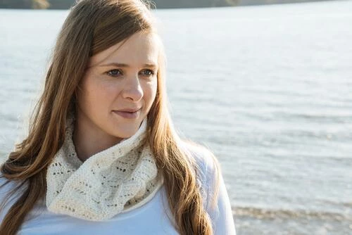 A pretty lacey cowl, a perfect layer to add to your wardrobe.