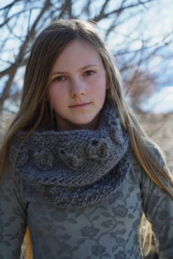 A super chunky textured cowl, snug and warm to wear and quick to knit.