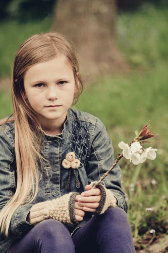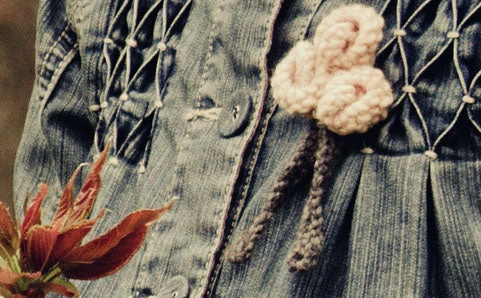 Pretty textured fingerless Mitts with a tiny flower detail and a matching brooch with 3 tiny flowers. Beautifully detailed fashion accessories for the girl who likes to stand out.