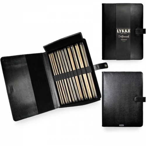 Displayed in the luxurious LYKKE Black Faux case, this impressive set comes with 12 pairs of 35cm (14″) single-pointed straight needles from 3.5mm (US 4) to 12mm (US 17). The needles have both metric and US sizes etched on them.