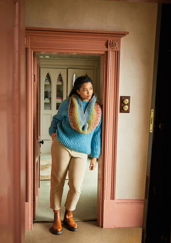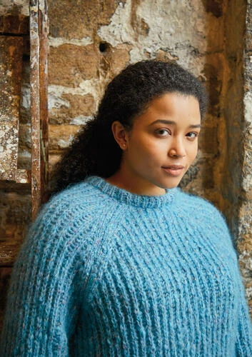 This cosy raglan sweater is knitted in the beautiful new Tweed Haze using a slip stitch rib throughout. Designed by Lisa Richardson, the sweater has a classic crew neck, long sleeves and a slightly longer length hem for a flattering fit.