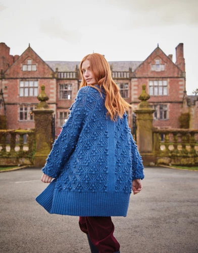 WOMEN’S LONGLINE TEXTURED BOBBLE DETAIL CARDIGAN IN SIRDAR COUNTRY CLASSIC WORSTED