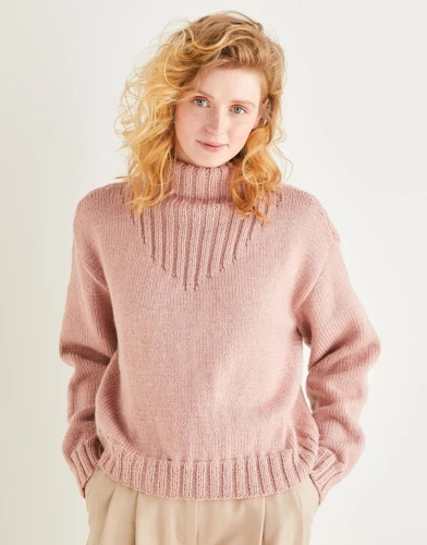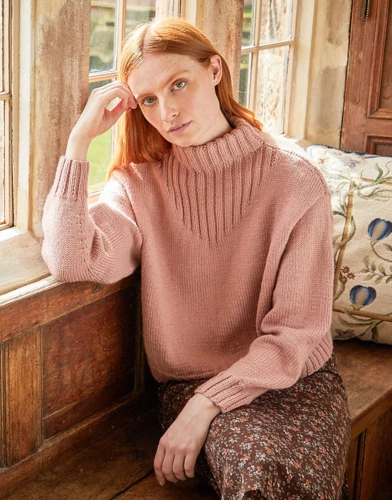 WOMEN’S FUNNEL NECK RIB DETAIL SWEATER IN SIRDAR COUNTRY CLASSIC WORSTED