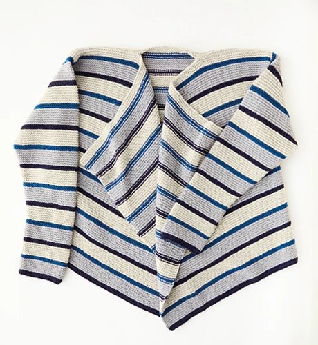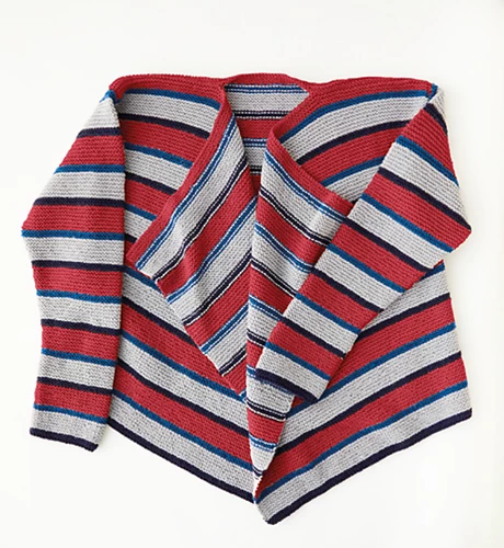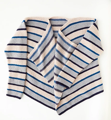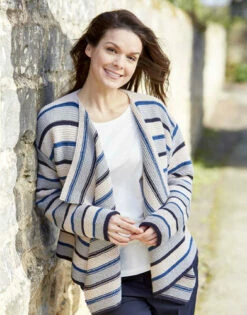 With its stripes and a waterfall opening, this cardigan creates geometric waves as you move. Knitted in garter stitch stripes throughout, the wide range of colours with instructions for sizes from Sirdar Country Classic make it ideal for this striped cropped cardigan.