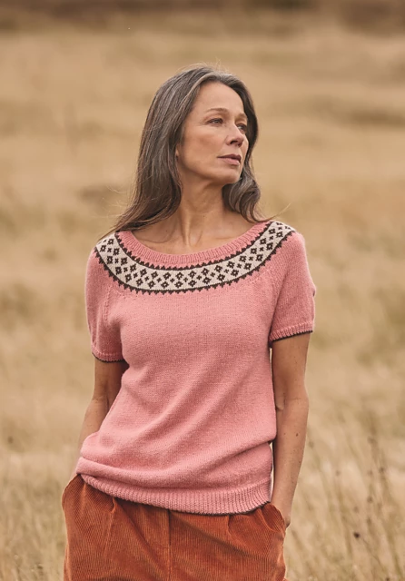 Knitted in a pure wool blend, with elegant fairisle pattern detailing across the neck, our fairisle yoke top is the perfect outfit addition for any occasion. Short sleeves mean its great for those spring summer months when the weather starts to rise.