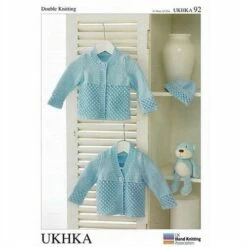 The trinity stitch patterning is so bold and familiar that it reads through the most colourful variegates, so it doesnt matter what style of yarn you choose to make these handsome pieces. They are perfectly suitable for boys or girls, and you have your choice of a crew or V neck. The cuff treatment, and hat brim, echo the lower body patterning for extra finesse. All pieces are knit flat and seamed.