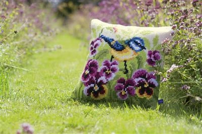 | Variations | Vervaco Cross Stitch Cushion Kit – Blue tit on pansies |